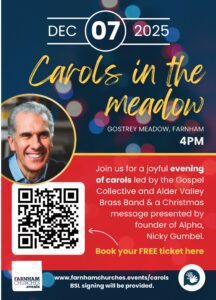 Farnham churches are coming together for this special outdoor Christmas Carol Service with internationally renowned speaker Nicky Gumbel. Gospel Collective will lead us in singing carols together with music provided by Alder Valley Brass Band. It’s FREE but it will help us plan if we know you are coming!